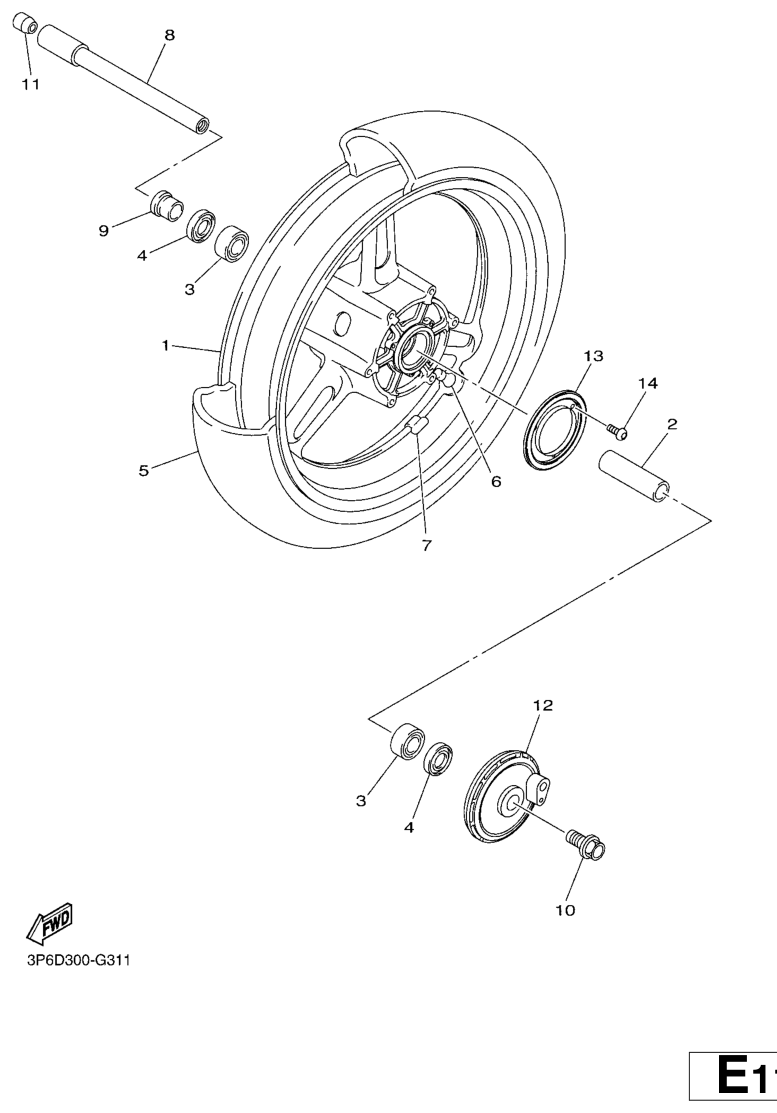 Etupyörä, FJR1300A 2008, FJR1300, 1300 cc, Yamaha -varaosa luettelot