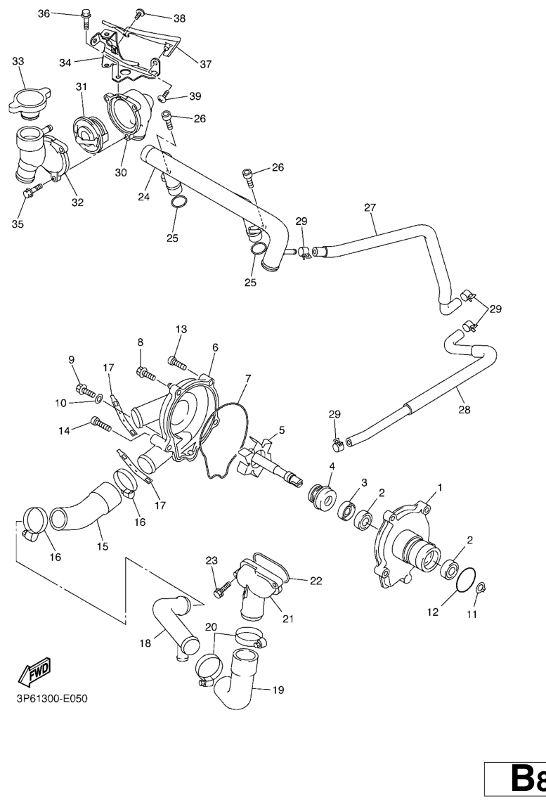 Vesipumppu, FJR1300A 2008, FJR1300, 1300 cc, Yamaha -varaosa luettelot