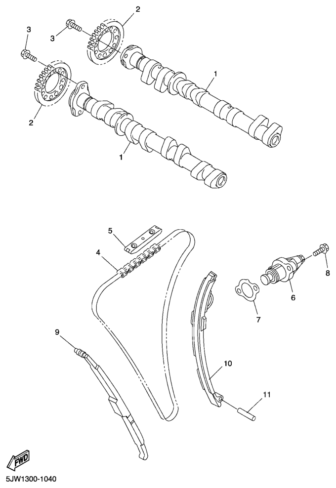Nokka-akseli ja ketju, FJR1300A 2010, FJR1300, 1300 cc, Yamaha -varaosa luettelot
