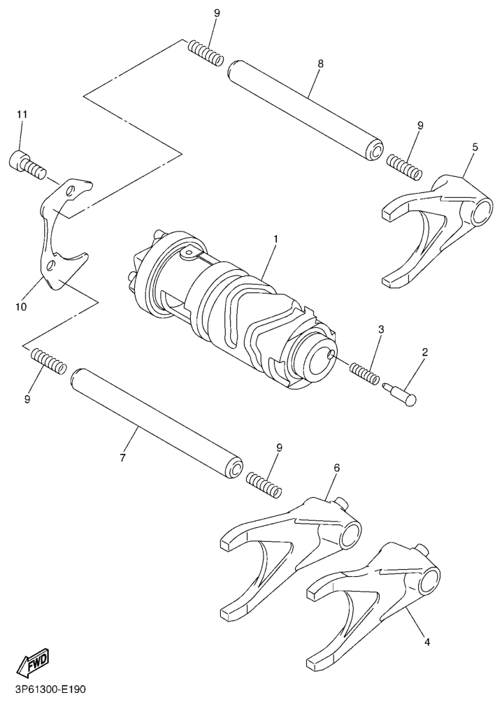 Vaihderumpu ja haarukat, FJR1300A 2010, FJR1300, 1300 cc, Yamaha -varaosa luettelot
