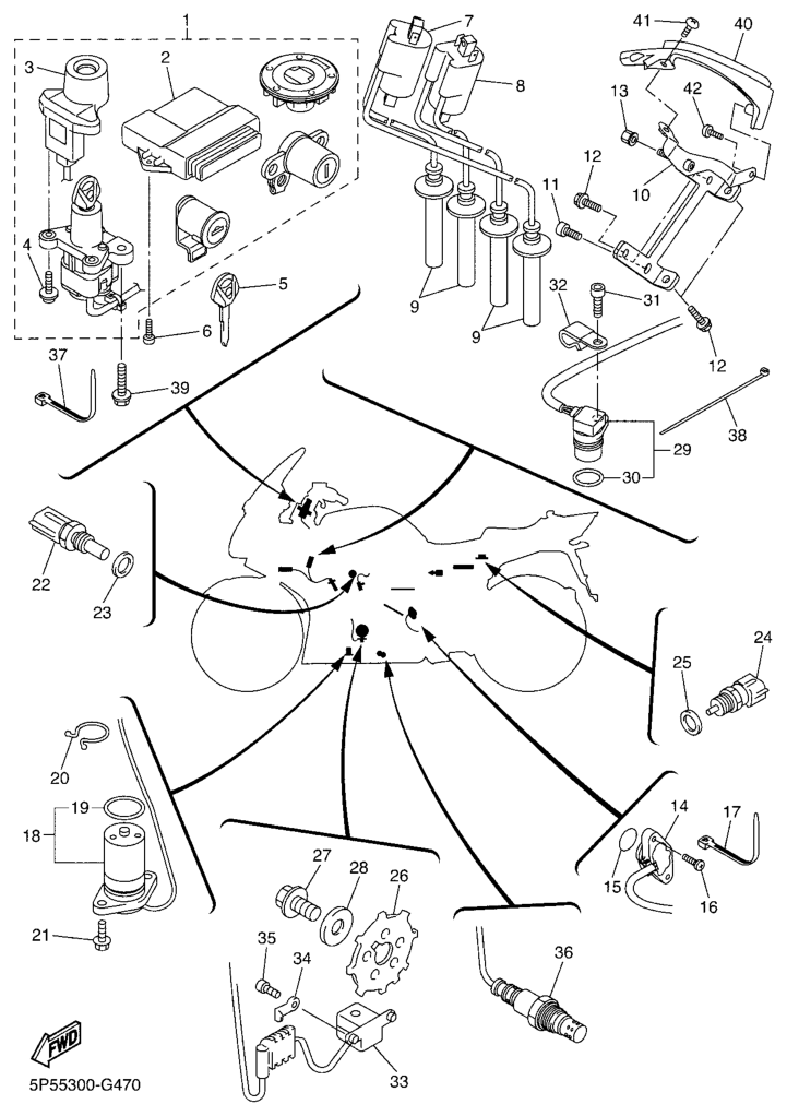 Sähköjestelmä 1, FJR1300A 2011, FJR1300, 1300 cc, Yamaha -varaosa luettelot