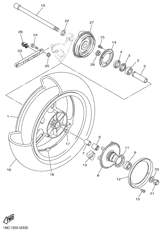 Takapyörä, FJR1300A 2014, FJR1300, 1300 cc, Yamaha -varaosa luettelot