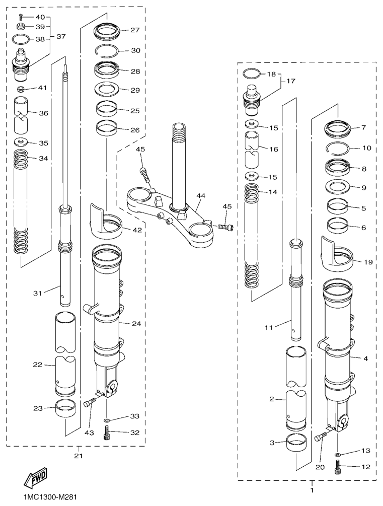 Etuhaarukka, FJR1300A 2015, FJR1300, 1300 cc, Yamaha -varaosa luettelot