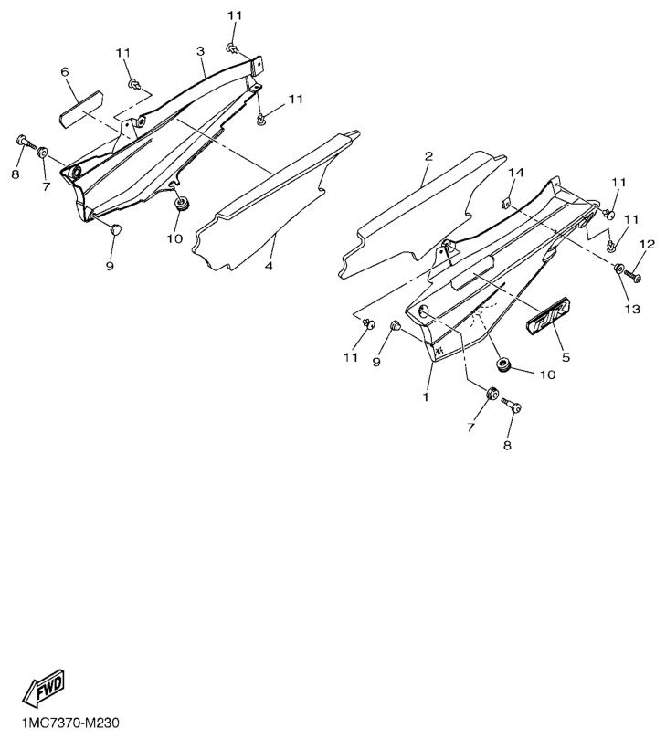 Side cover, FJR1300AE 2014, FJR1300, 1300 cc, Yamaha -varaosa luettelot