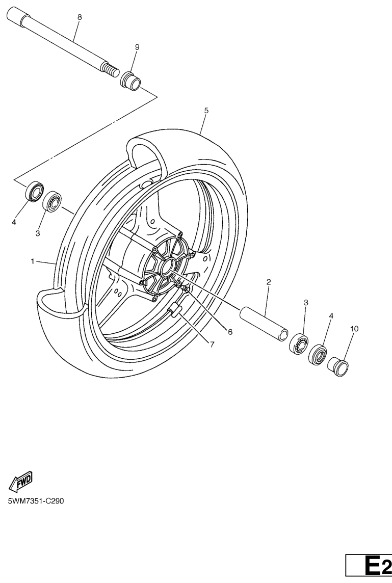 Etupyörä, XJR1300 2005, XJR1300, 1300 cc, Yamaha -varaosa luettelot