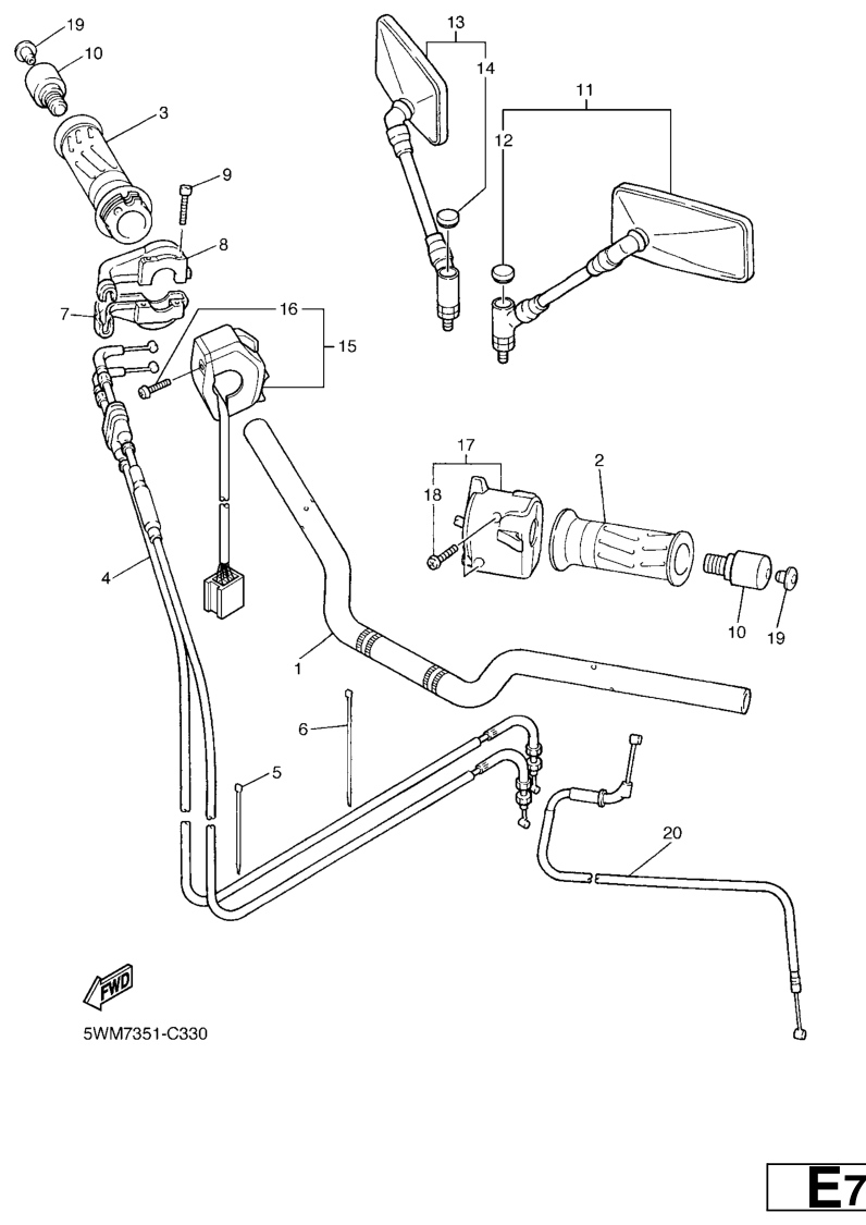 Ohjaustanko ja vaijerit, XJR1300 2005, XJR1300, 1300 cc, Yamaha -varaosa luettelot