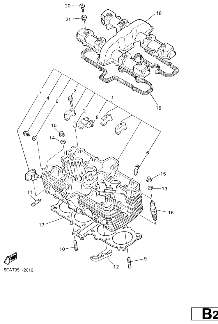 Sylinterikansi, XJR1300 2005, XJR1300, 1300 cc, Yamaha -varaosa luettelot