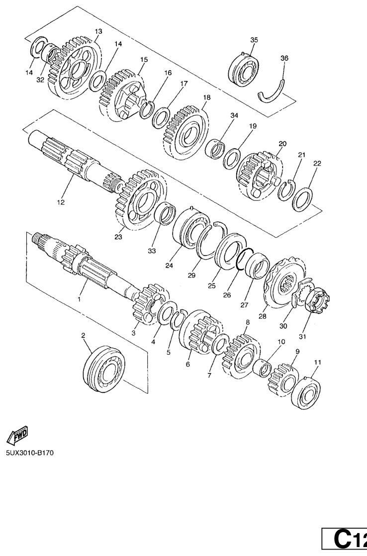 Vaihteisto, XJR1300 2005, XJR1300, 1300 cc, Yamaha -varaosa luettelot