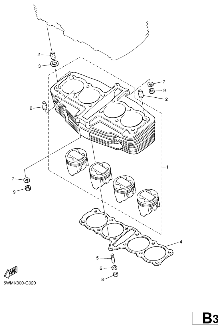 Sylinteri, XJR1300 2007, XJR1300, 1300 cc, Yamaha -varaosa luettelot