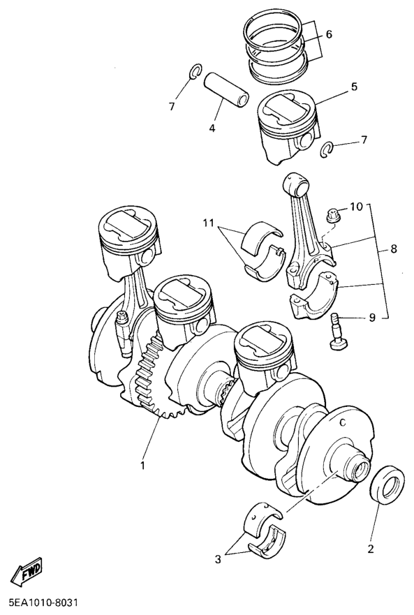 Kampiakseli ja mäntä, XJR1300 2010, XJR1300, 1300 cc, Yamaha -varaosa luettelot