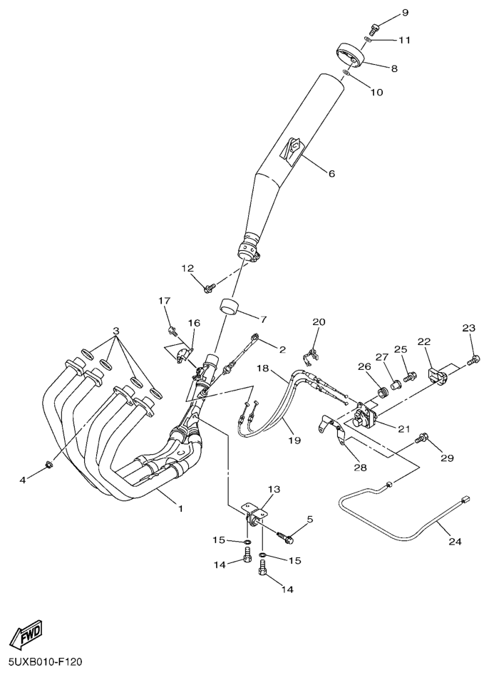 Pakoputkisto, XJR1300 2011, XJR1300, 1300 cc, Yamaha -varaosa luettelot