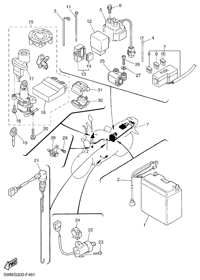 Sähköjestelmä 2, XJR1300 2011, XJR1300, 1300 cc, Yamaha -varaosa luettelot