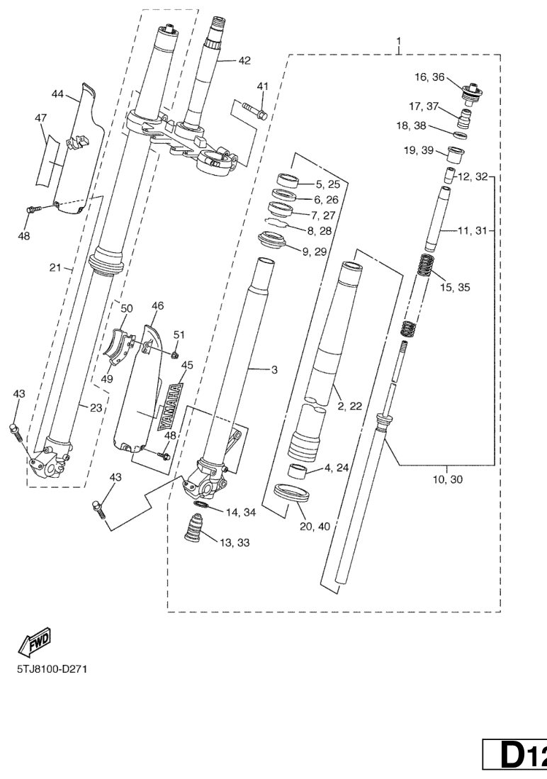 Etuhaarukka, WR250F 2005, WR250F, 250 cc Offroad, Yamaha -varaosa luettelot