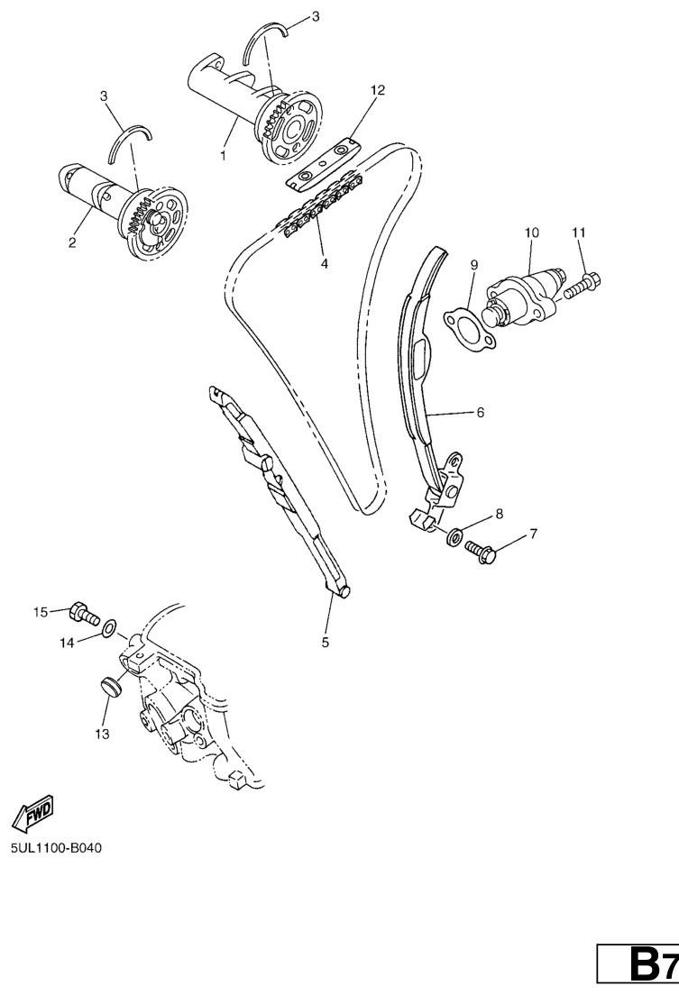Nokka-akseli ja ketju, WR250F 2005, WR250F, 250 cc Offroad, Yamaha -varaosa luettelot