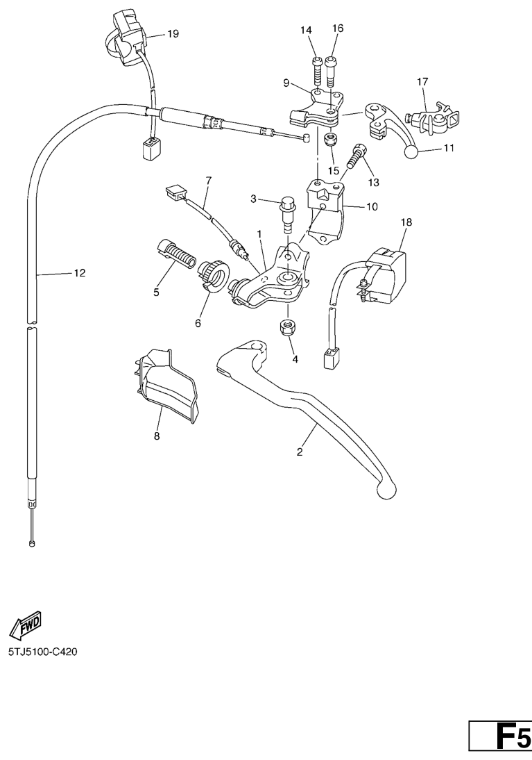 Ohjaustangon katkaisija ja vivut, WR250F 2005, WR250F, 250 cc Offroad, Yamaha -varaosa luettelot