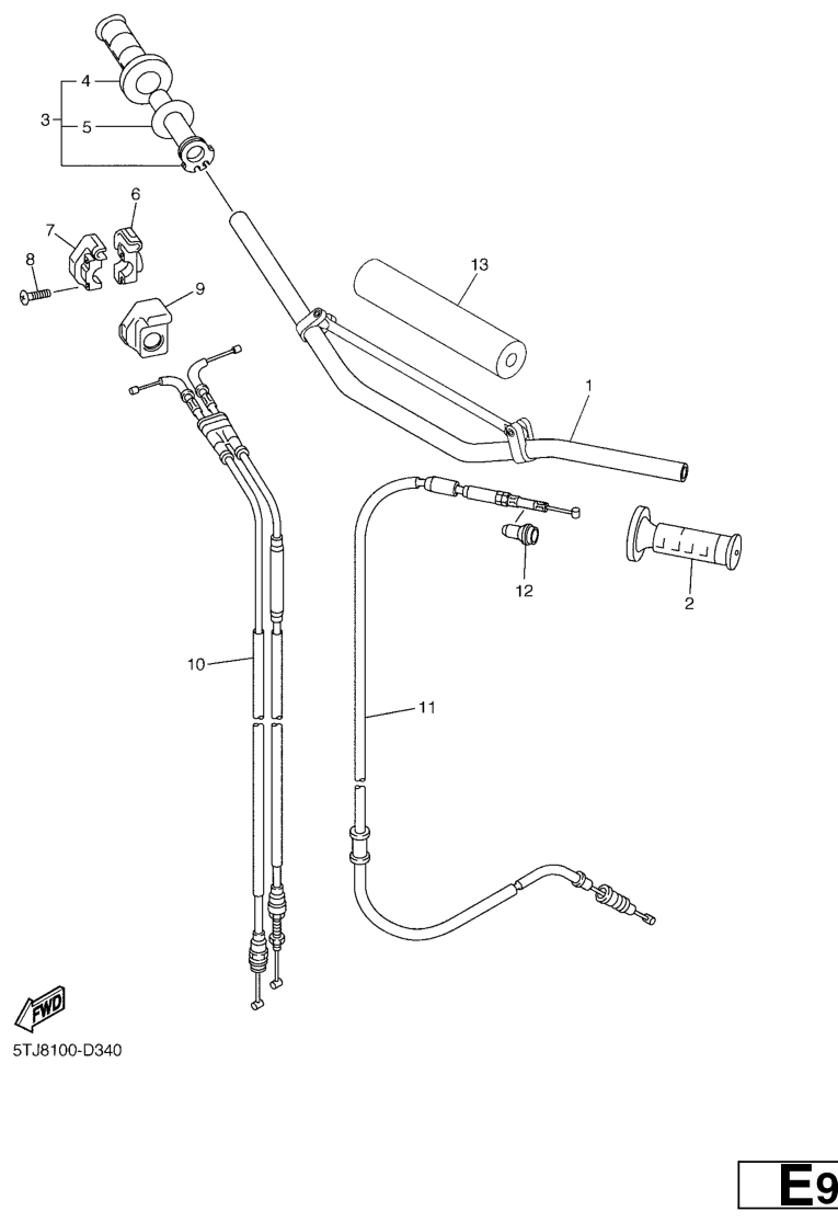 Ohjaustanko ja vaijerit, WR250F 2005, WR250F, 250 cc Offroad, Yamaha -varaosa luettelot