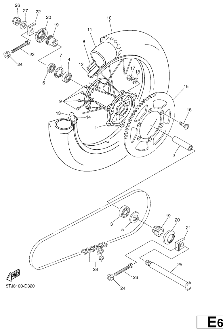Takapyörä, WR250F 2005, WR250F, 250 cc Offroad, Yamaha -varaosa luettelot