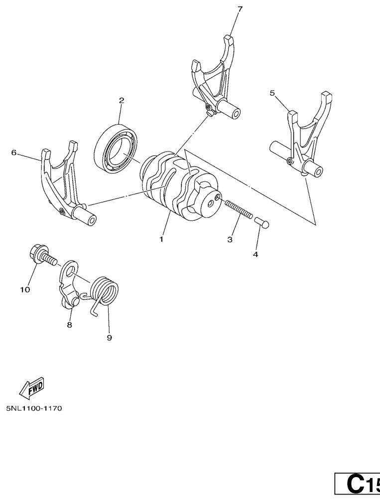 Vaihderumpu ja haarukat, WR250F 2005, WR250F, 250 cc Offroad, Yamaha -varaosa luettelot