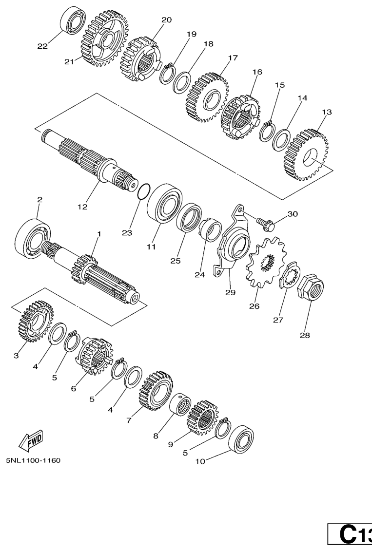 Vaihteisto, WR250F 2005, WR250F, 250 cc Offroad, Yamaha -varaosa luettelot