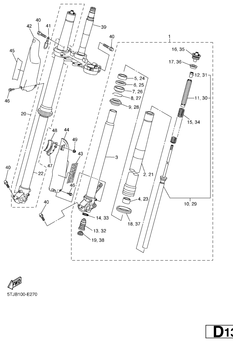 Etuhaarukka, WR250F 2006, WR250F, 250 cc Offroad, Yamaha -varaosa luettelot