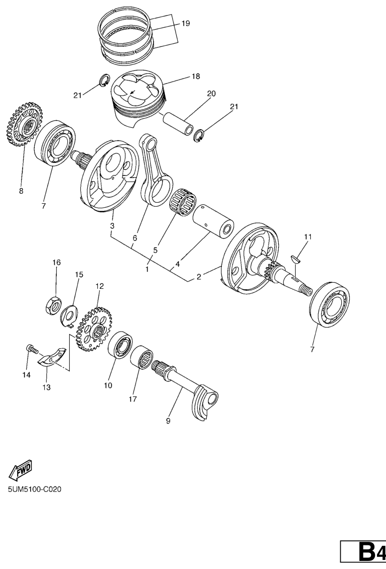 Kampiakseli ja mäntä, WR250F 2006, WR250F, 250 cc Offroad, Yamaha -varaosa luettelot