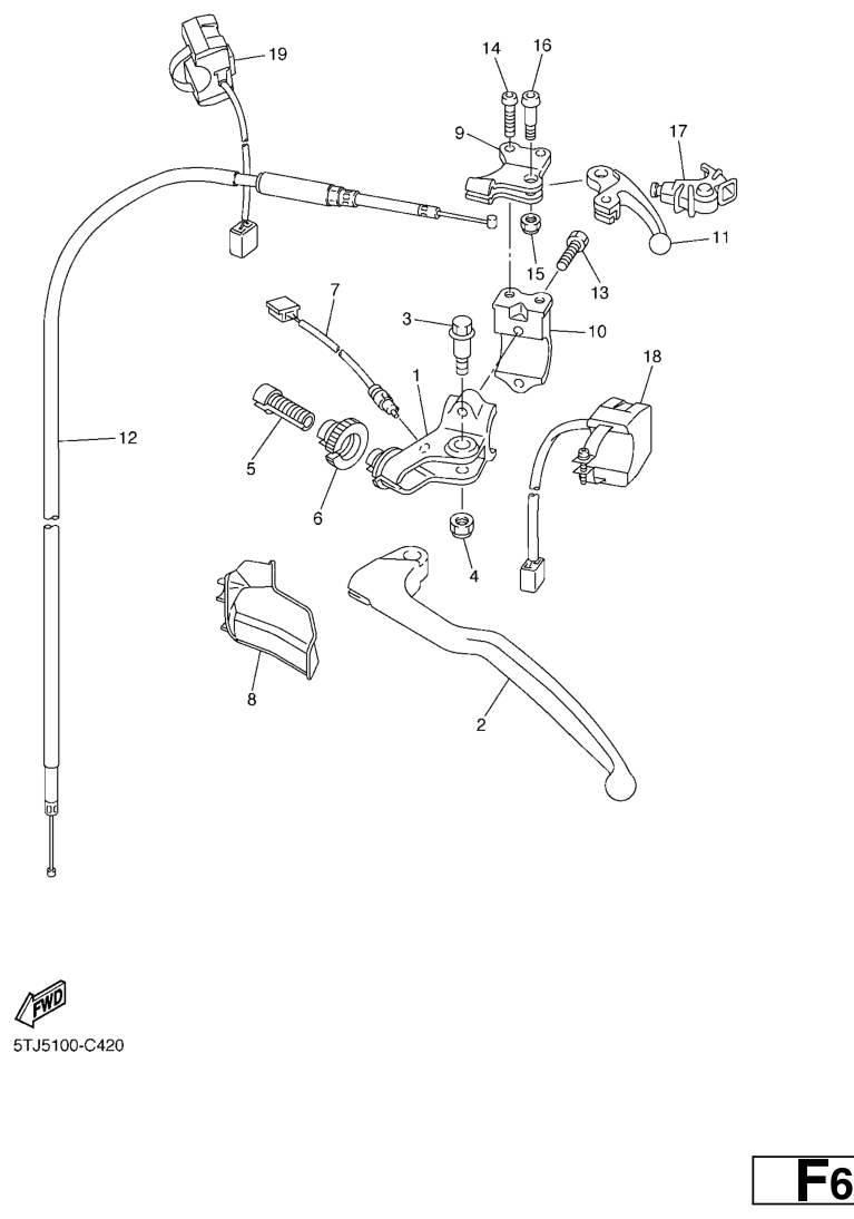 Ohjaustangon katkaisija ja vivut, WR250F 2006, WR250F, 250 cc Offroad, Yamaha -varaosa luettelot