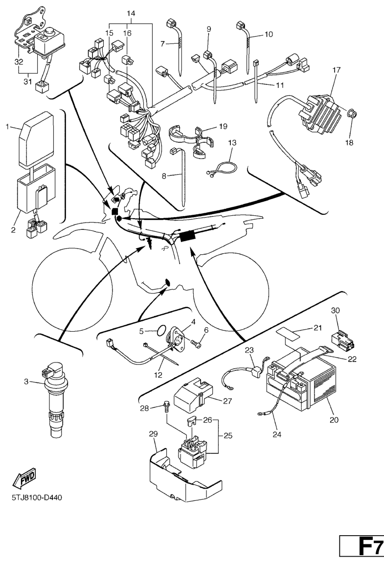 Sähköjestelmä 1, WR250F 2006, WR250F, 250 cc Offroad, Yamaha -varaosa luettelot