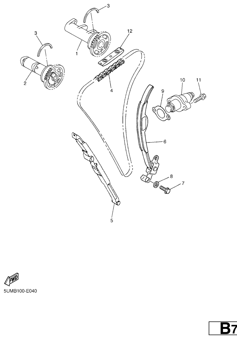 Nokka-akseli ja ketju, WR250F 2007, WR250F, 250 cc Offroad, Yamaha -varaosa luettelot