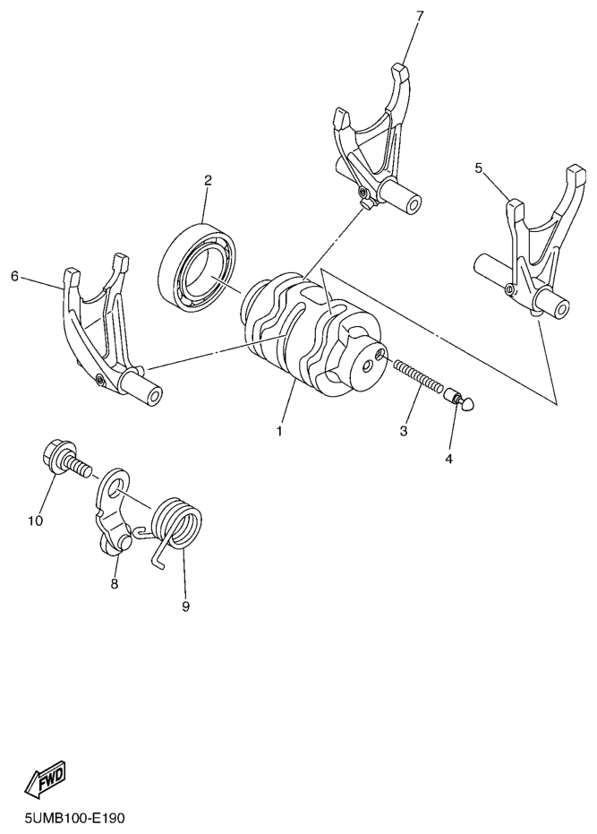 Vaihderumpu ja haarukat, WR250F 2010, WR250F, 250 cc Offroad, Yamaha -varaosa luettelot