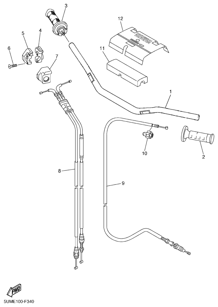 Ohjaustanko ja vaijerit, WR250F 2012, WR250F, 250 cc Offroad, Yamaha -varaosa luettelot