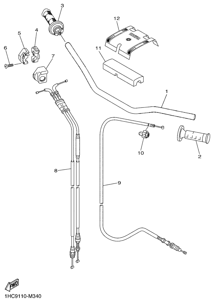 Ohjaustanko ja vaijerit, WR250F 2013, WR250F, 250 cc Offroad, Yamaha -varaosa luettelot