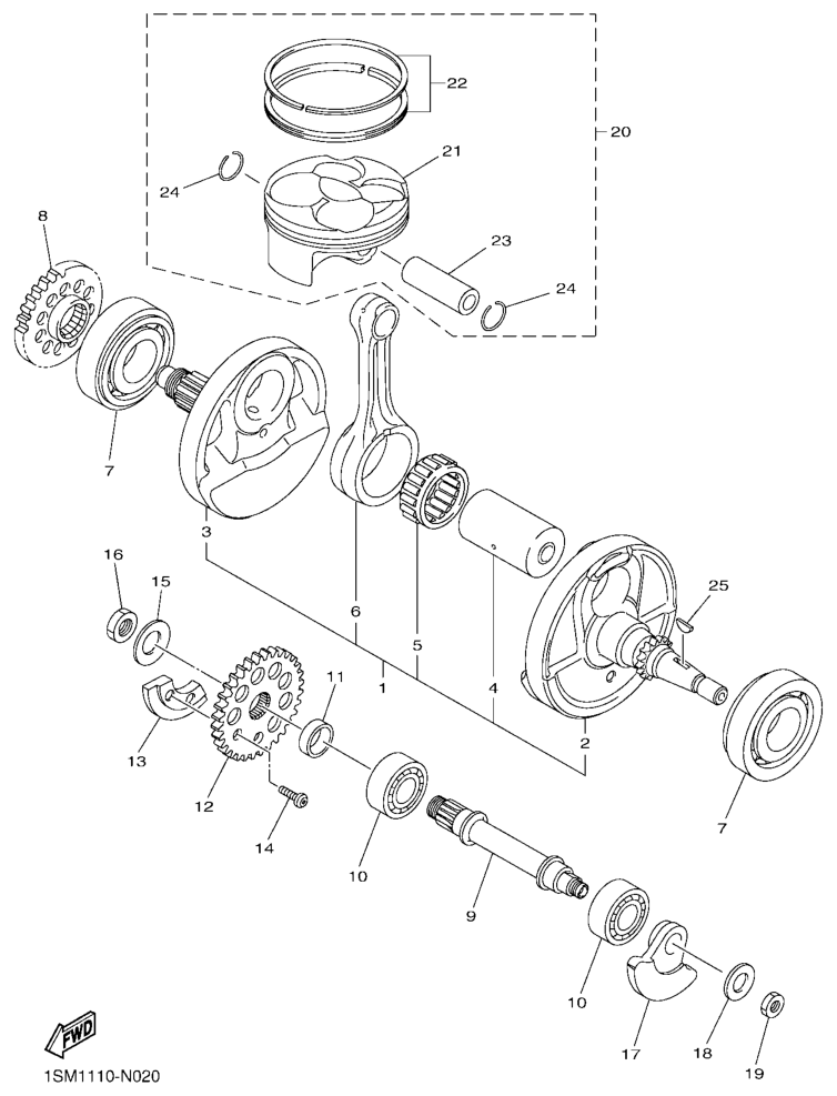Kampiakseli ja mäntä, WR250F 2015, WR250F, 250 cc Offroad, Yamaha -varaosa luettelot