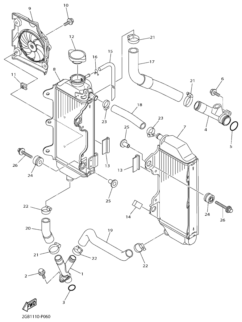 Jäähdytin ja letkut, WR250F 2019, WR250F, 250 cc Offroad, Yamaha -varaosa luettelot