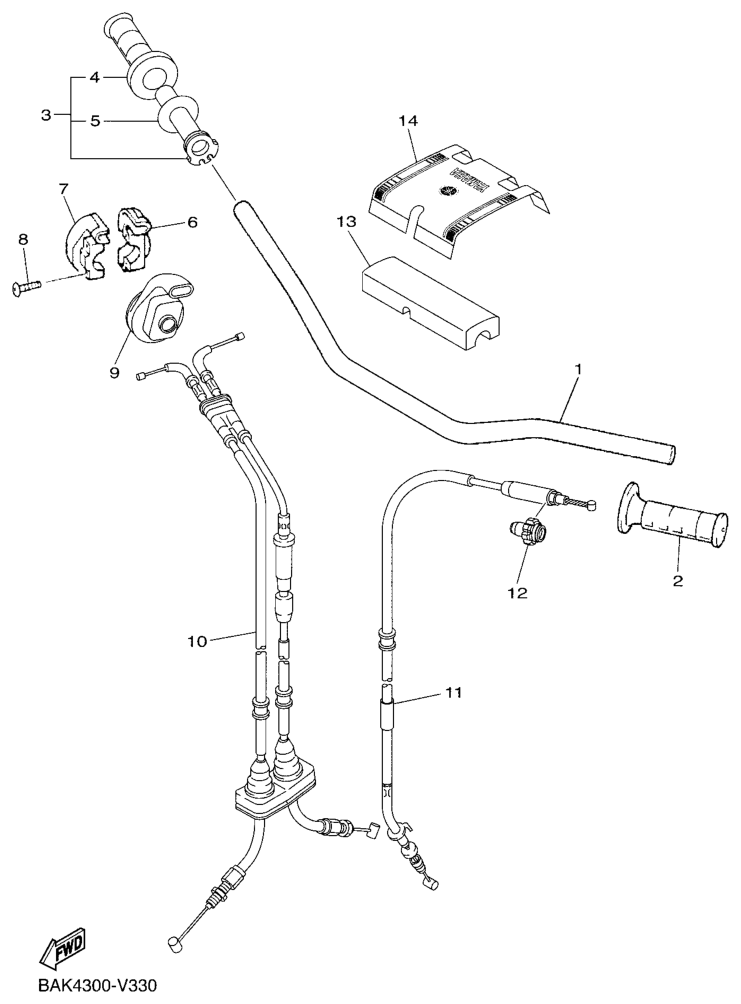 Ohjaustanko ja vaijerit, WR250F 2020, WR250F, 250 cc Offroad, Yamaha -varaosa luettelot
