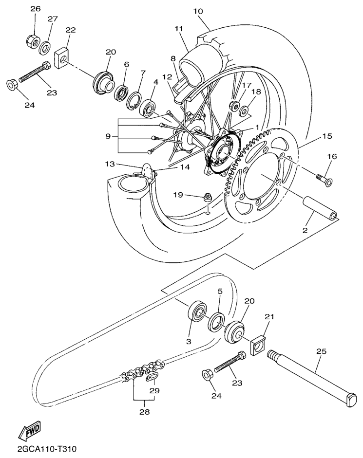 Takapyörä, WR250F 2020, WR250F, 250 cc Offroad, Yamaha -varaosa luettelot