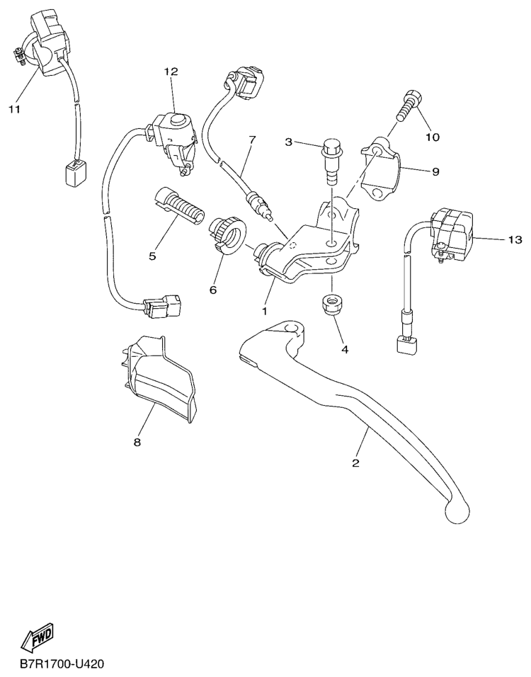 Ohjaustangon katkaisija ja vivut, WR250F 2021, WR250F, 250 cc Offroad, Yamaha -varaosa luettelot