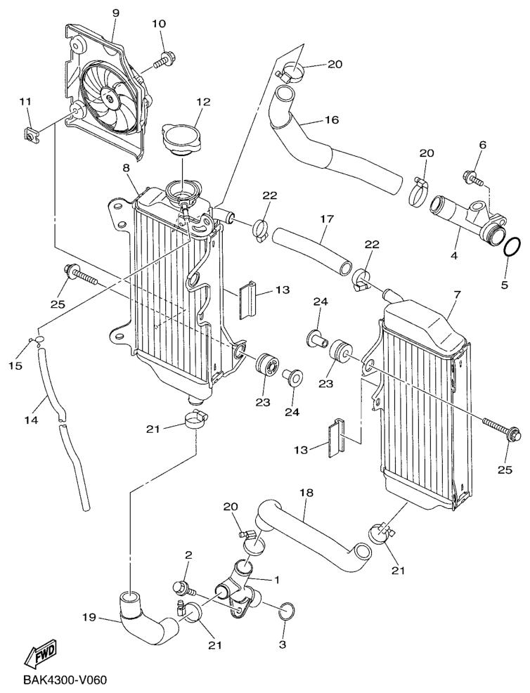 Jäähdytin ja letkut, WR250F 2024, WR250F, 250 cc Offroad, Yamaha -varaosa luettelot
