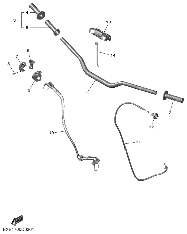 Ohjaustanko ja vaijerit, WR250F 2025, WR250F, 250 cc Offroad, Yamaha -varaosa luettelot