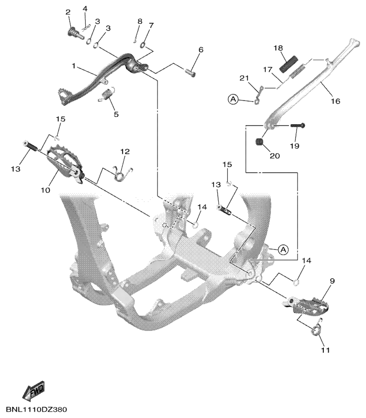 Seisontatuki ja jalkatapit, WR250F 2025, WR250F, 250 cc Offroad, Yamaha -varaosa luettelot
