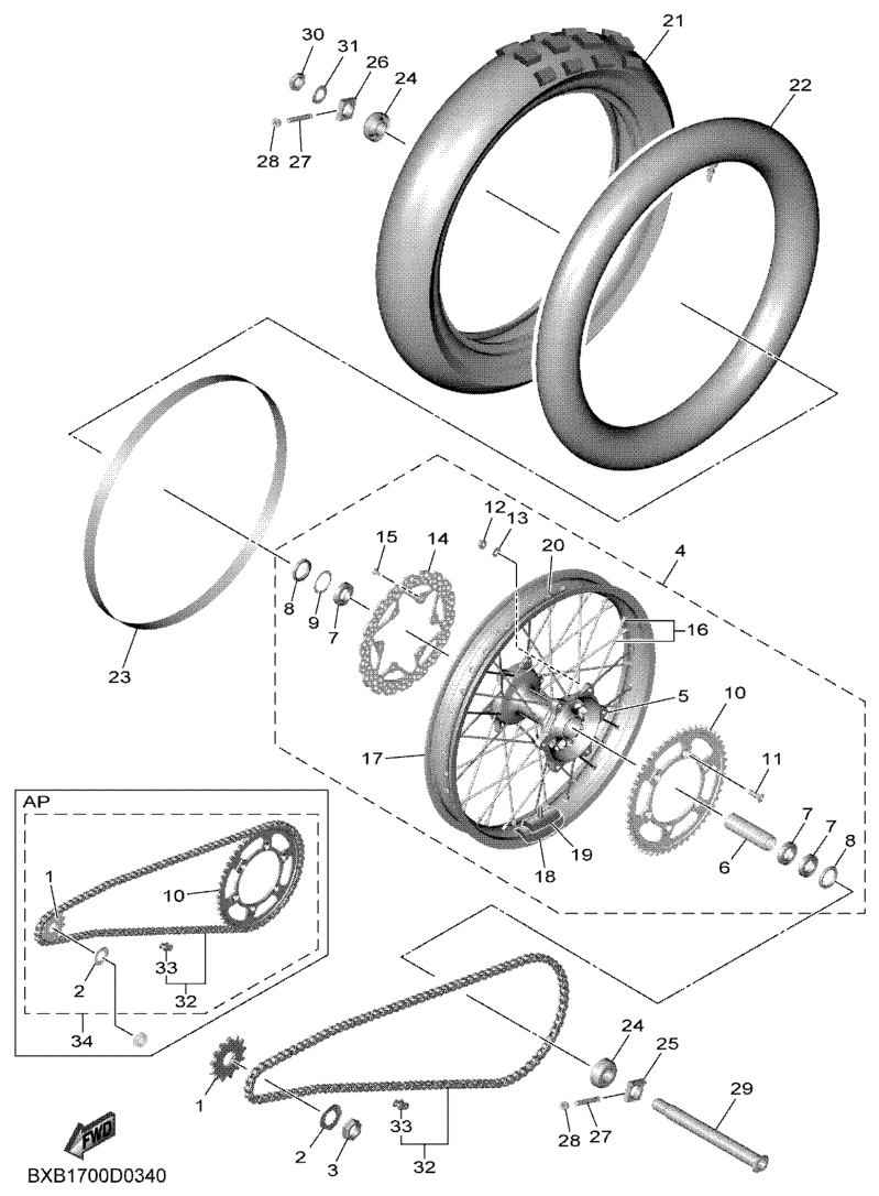 Takapyörä, WR250F 2025, WR250F, 250 cc Offroad, Yamaha -varaosa luettelot