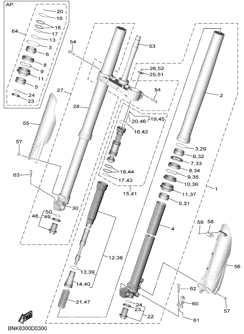 Etuhaarukka, WR250F 2026, WR250F, 250 cc Offroad, Yamaha -varaosa luettelot