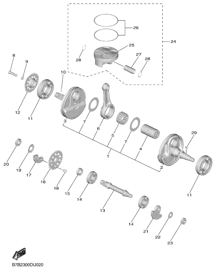 Kampiakseli ja mäntä, WR250F 2026, WR250F, 250 cc Offroad, Yamaha -varaosa luettelot
