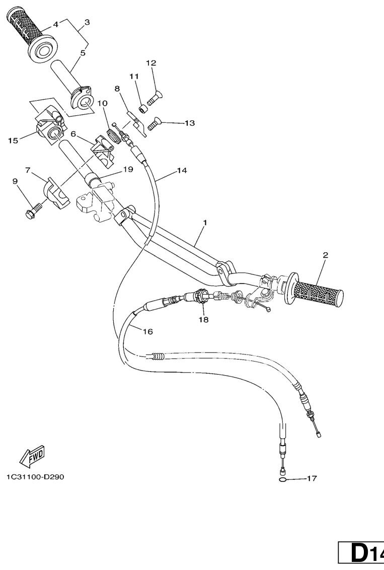 Ohjaustanko ja vaijerit, YZ250 2005, YZ250, 250 cc Offroad, Yamaha -varaosa luettelot