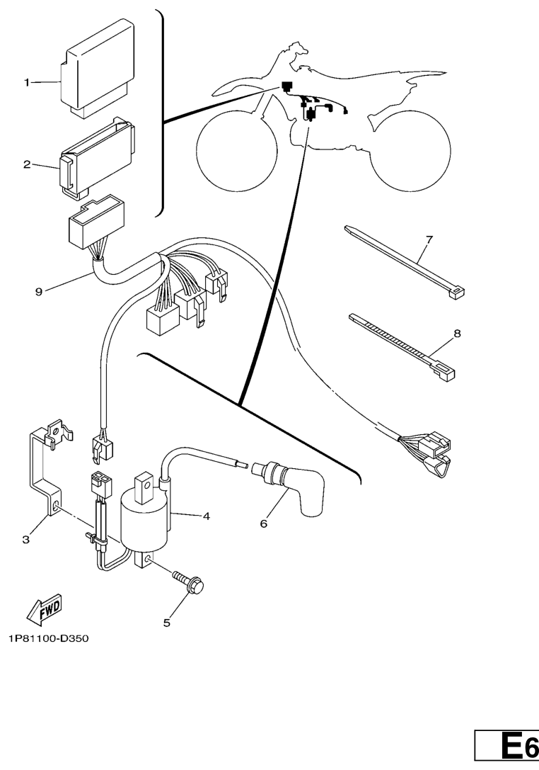 Sähköjestelmä 1, YZ250 2005, YZ250, 250 cc Offroad, Yamaha -varaosa luettelot