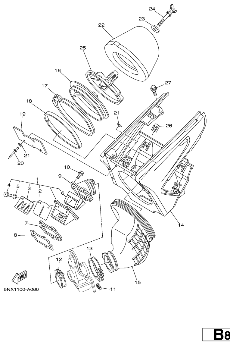 Ilmanotto, YZ250 2006, YZ250, 250 cc Offroad, Yamaha -varaosa luettelot