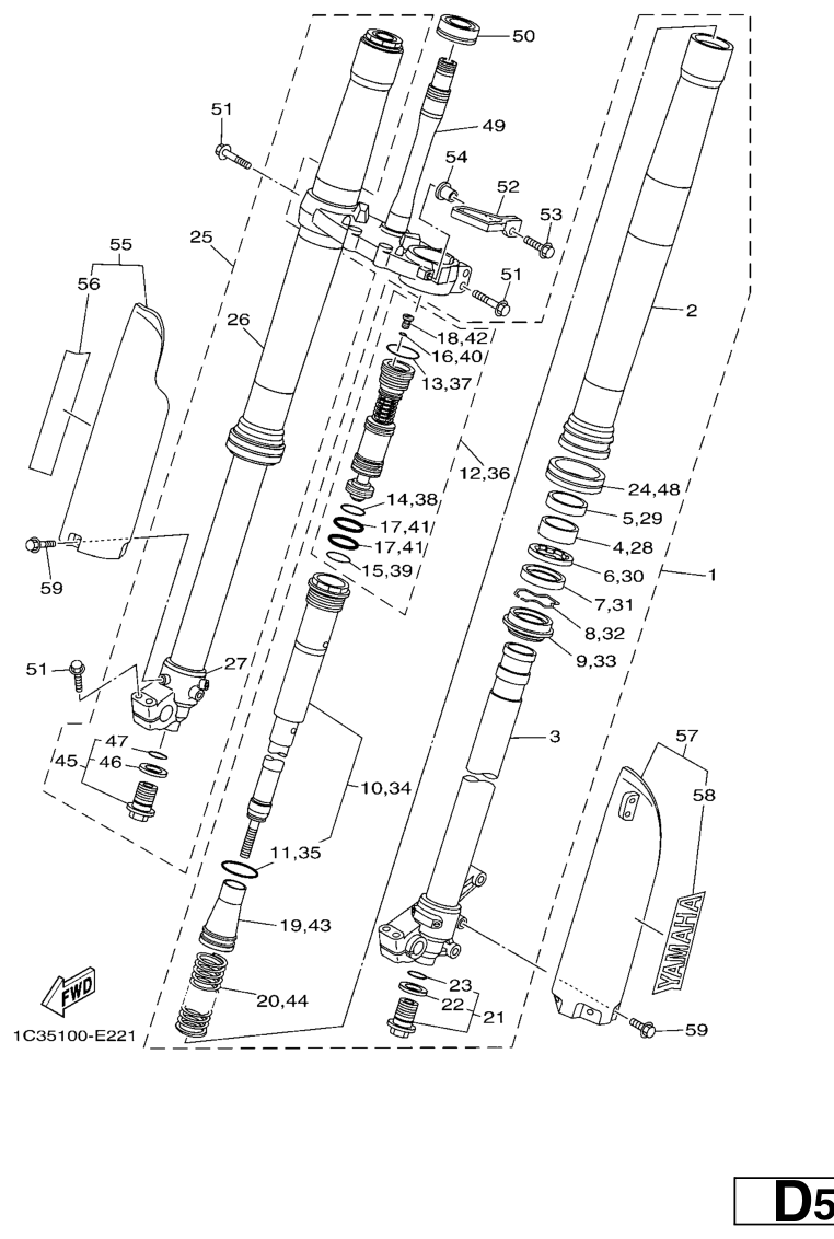 Etuhaarukka, YZ250 2007, YZ250, 250 cc Offroad, Yamaha -varaosa luettelot