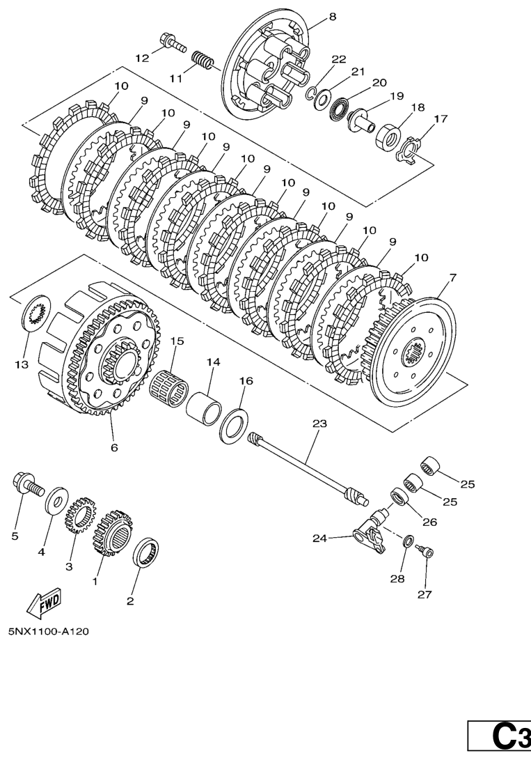 Kytkin, YZ250 2007, YZ250, 250 cc Offroad, Yamaha -varaosa luettelot