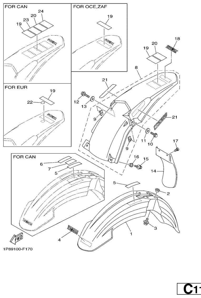Lokasuoja, YZ250 2007, YZ250, 250 cc Offroad, Yamaha -varaosa luettelot