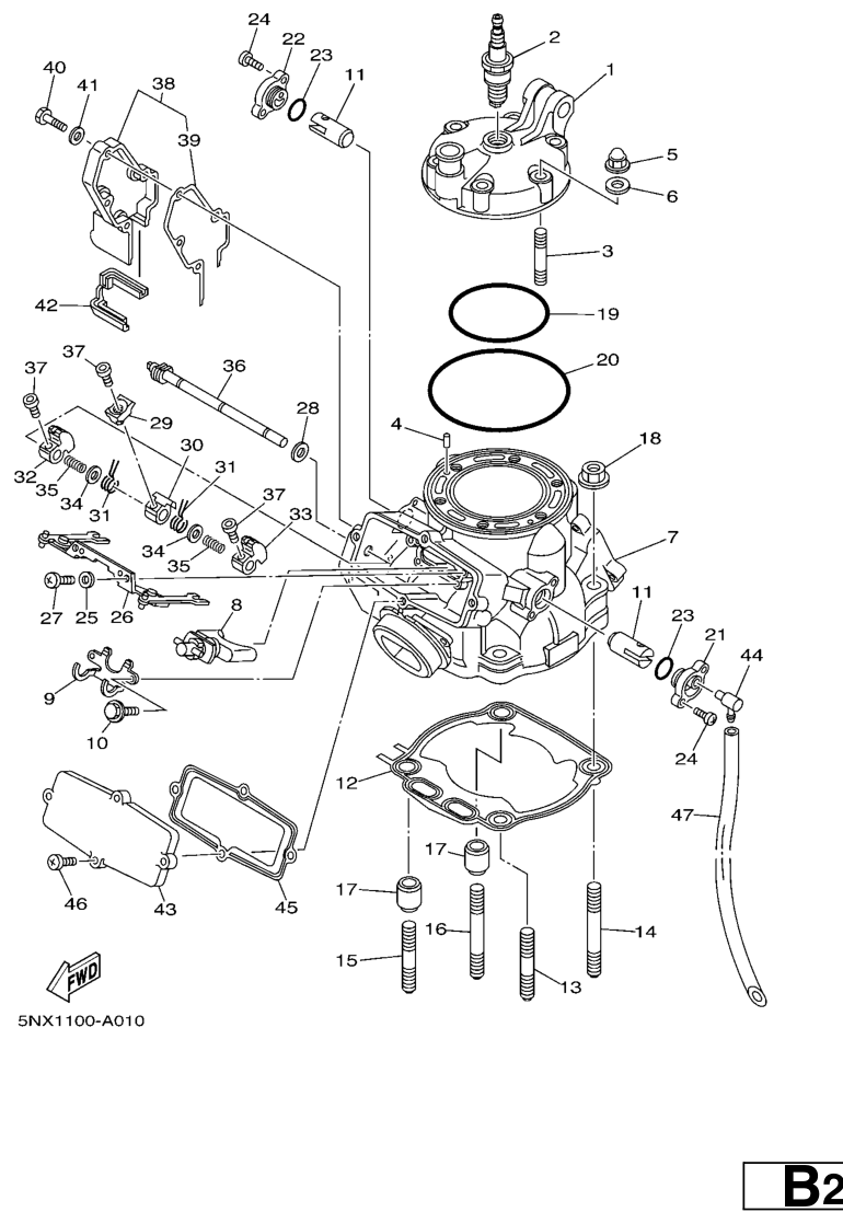 Sylinterikansi, YZ250 2008, YZ250, 250 cc Offroad, Yamaha -varaosa luettelot