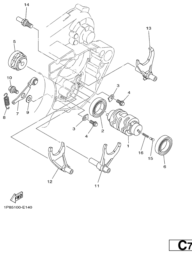 Vaihderumpu ja haarukat, YZ250 2008, YZ250, 250 cc Offroad, Yamaha -varaosa luettelot